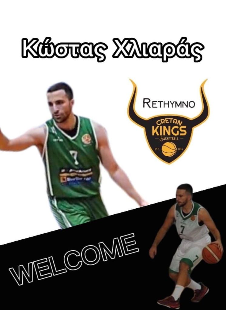 «Το Ρέθυμνο Cretan Kings ανακοινώνει την απόκτηση του 21χρόνου γκάρντ, Κωνσταντίνου Χλιαρά, ο οποίος αποτελεί το νέο μέλος της οικογένειας μας. Ο γεννημένος το 2001 και ύψους 1.85 γκαρντ, ξεκίνησε από τα τμήματα υποδομών του Α.Ε. Κοζάνης. Σε αντρικό επίπεδο αγωνίστηκε στην ομάδα του Ηρακλή Κοζάνης, στον Εργοτέλη, ενώ πέρυσι αγωνίστηκε στην ομάδα του Δειλινού στο πρωτάθλημα της ΕΚΑΣΚ.