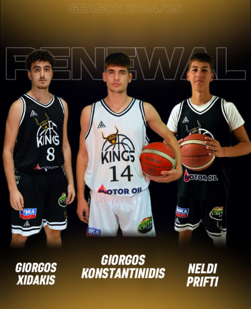 Στην ομάδα του Ρέθυμνο Cretan Kings θα συνεχίσουν να αγωνίζονται ο Γιώργος Ξυδάκης, Γιώργος Κωνσταντινίδης και Νέλντι Πρίφτη, με τους οποίους ανανεώθηκε η συνεργασία και για τη νέα σεζόν. Οι τρεις αθλητές θα συνεχίσουν στο ρόστερ των “Βασιλιάδων” και θα αποτελέσουν τρεις ακόμη νεανικές λύσεις.