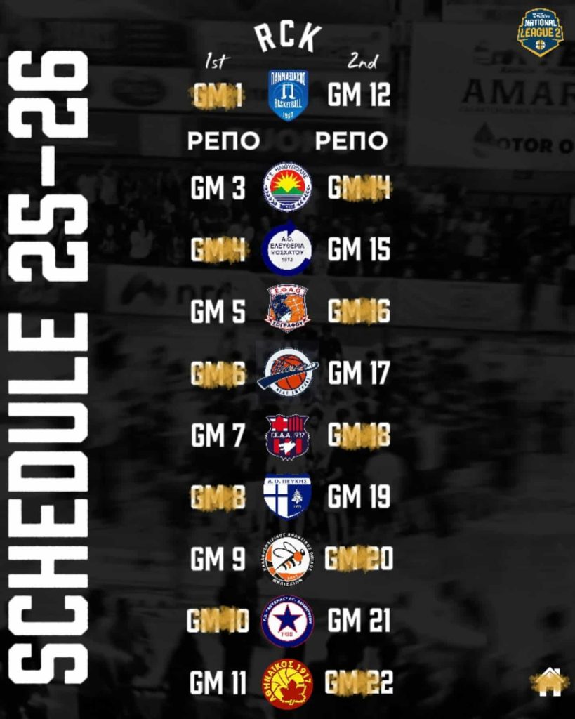 Το Ρέθυμνο Cretan Kings έμαθε το πλήρες αγωνιστικό του πρόγραμμα για το πρωτάθλημα της National League 2 (3ος Όμιλος) και μετρά αντίστροφα για την έναρξη της σεζόν.