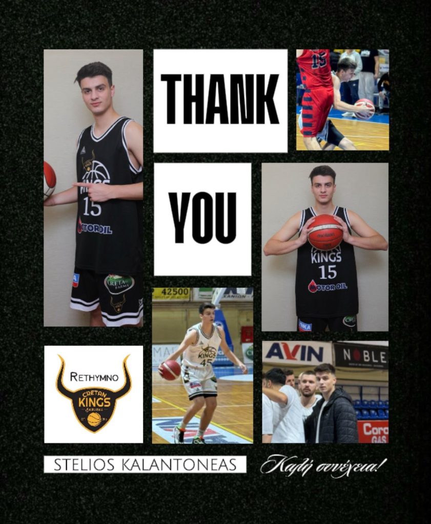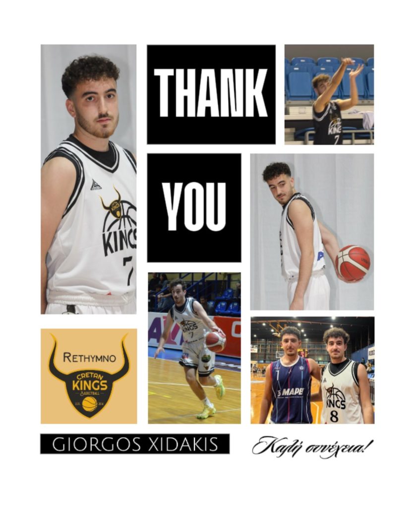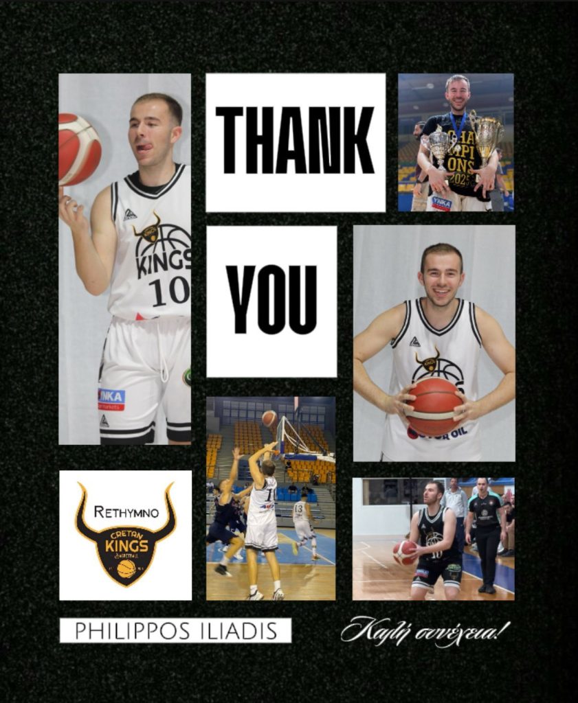 Η ομάδα του Ρέθυμνο Cretan Kings θέλει να εκφράσει ευχαριστίες στους, Φίλιππο Ηλιάδη, Στέλιο Καλαντωνέα και Γιώργο Ξυδάκη για την προσφορά τους στην ομάδα και την συμμετοχή τους στην θριαμβευτική περσινή σεζόν που σφραγίστηκε με την άνοδο στην National League 2.